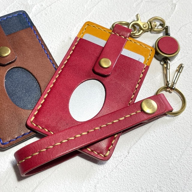 【23色から選べる】革製リールキーホルダー パスケース 定期入れ 栃木レザー