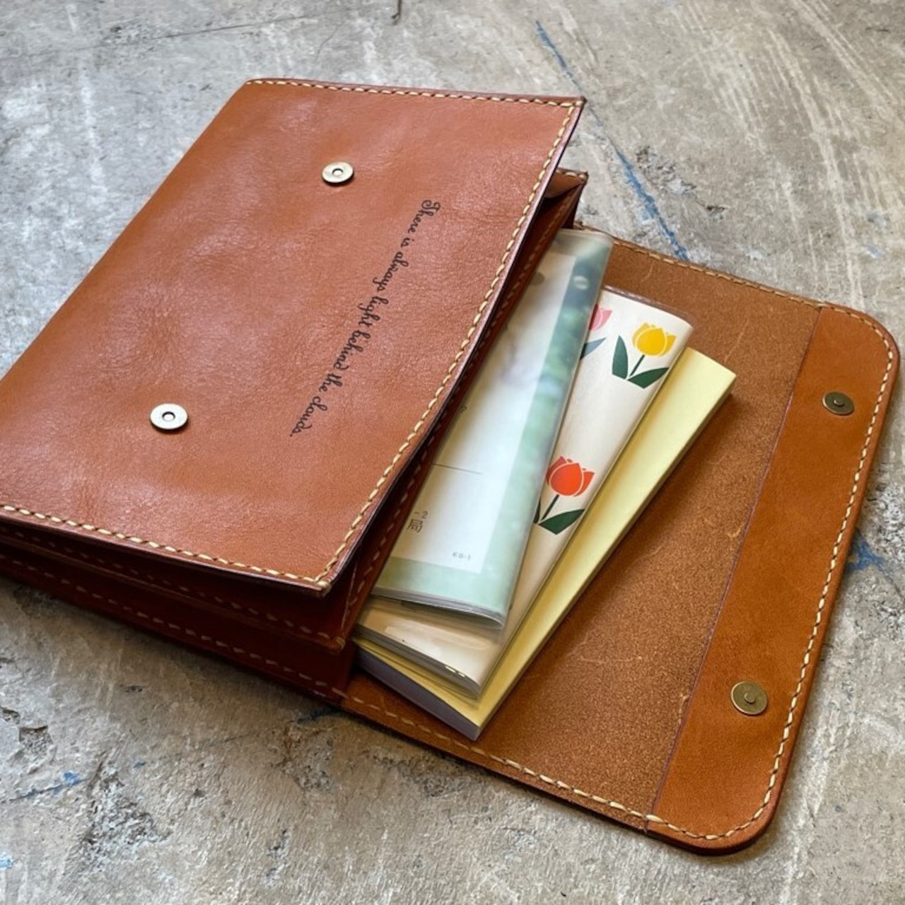 最奥のマチ無しポケットには書類関係はもちろん、お守りなどを入れて頂ければと
