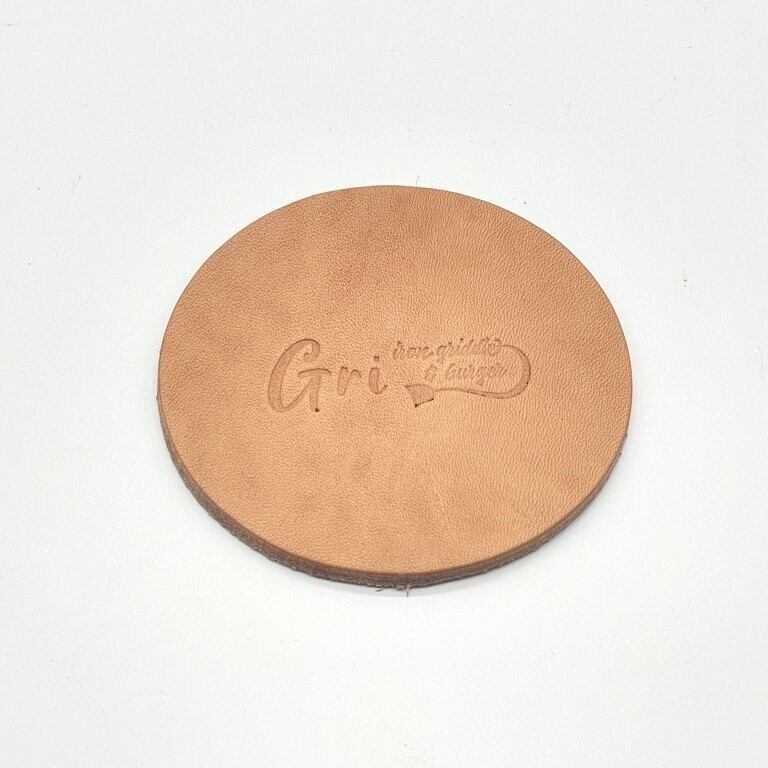 革製のコースターにお店のロゴやイラストなどを刻印する事が可能です。