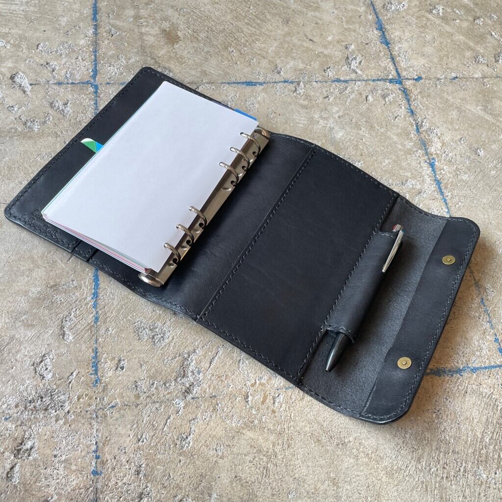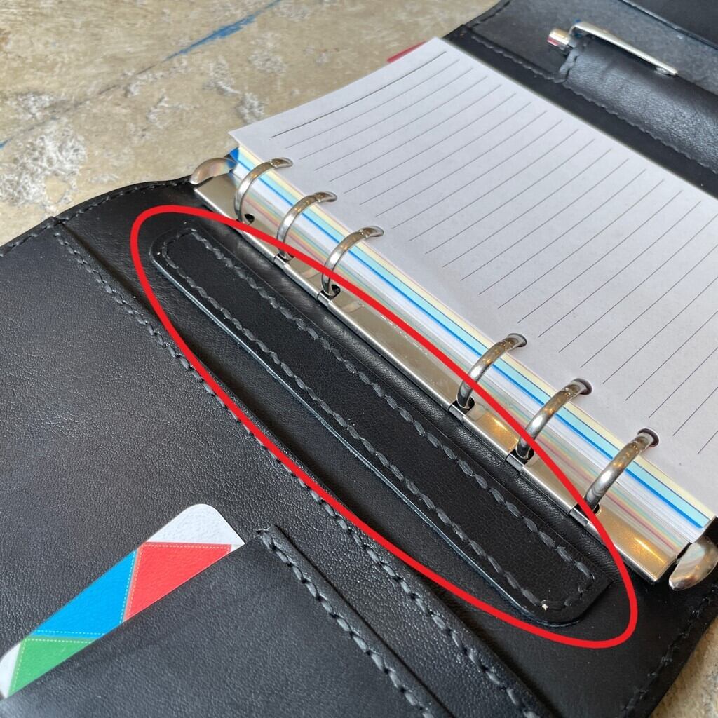 ・留め具を開けて頂くと右側にペンホルダーがございます。